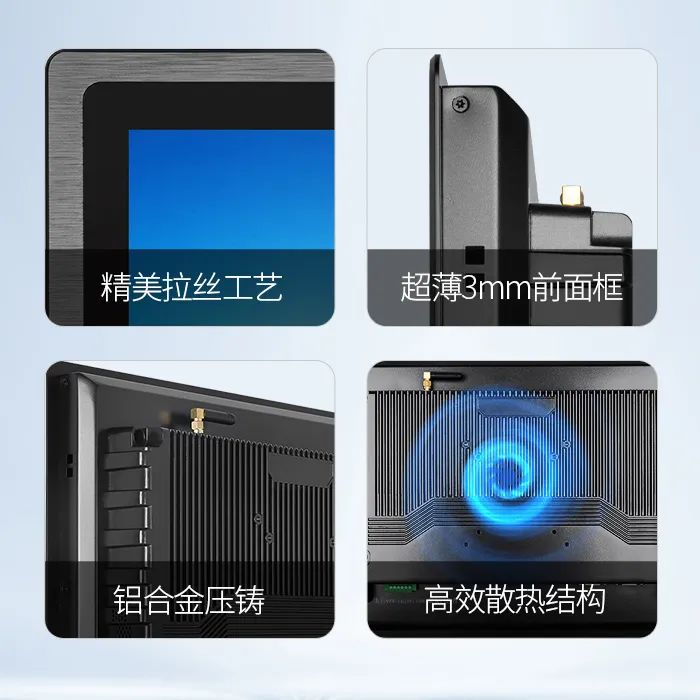 C款通用式系列產品,自帶光澤與金屬質感,拋光工藝,簡約時尚,10mm圓角窄邊框設計,展現科技時尚美學;支持桌面、壁掛、懸臂等多種安裝方式,適用于自動化產線、人工智能、智慧醫療和物聯網等場景與領域。