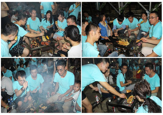 在燒烤過程中,大家分工明確,有人洗菜,有人生火,有人串制食物,配合默契,場面好不熱鬧!趁著旺盛的炭火,燒烤正式拉開了帷幕!