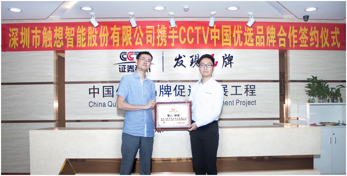 2017年9月2日,有著“卓越領先的技術企業”之稱的深圳觸想智能股份有限公司,在經過多重篩選與審核之后,憑借著精湛的行業技術、專業的研發團隊、強大的生產能力而在行業中脫穎而出,贏得CCTV《發現品牌》欄目的關注與認可,獲評“工控顯示設備行業優選品牌”的榮譽稱號。