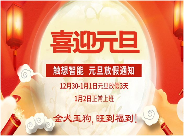 2018元旦節(jié)假期將至,根據(jù)《國(guó)務(wù)院辦公廳關(guān)于2018年部分節(jié)假日安排的通知》及結(jié)合觸想智能公司實(shí)際情況,針對(duì)2018年“元旦”節(jié)放假時(shí)間為2017年12月30日—2018年1月1日放假三天,1月2日正常上班。