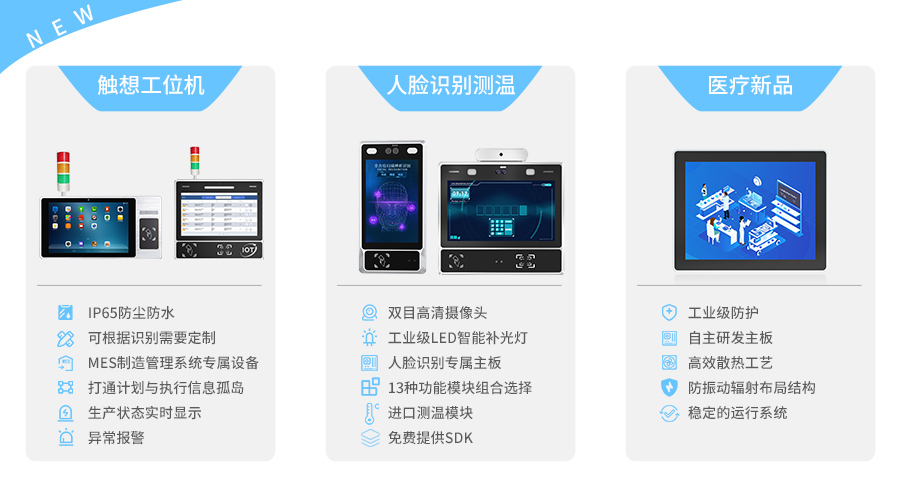 針對醫療領域特殊應用需求,滿足智能醫療檢測設備、診療設備、自助服務設備,自主開發設計一款與醫院環境相適應的高抗磁干擾、高效靜音散熱、防塵防水防震動工業級觸控顯示產品,滿足醫院智能終端設備配套應用需要。